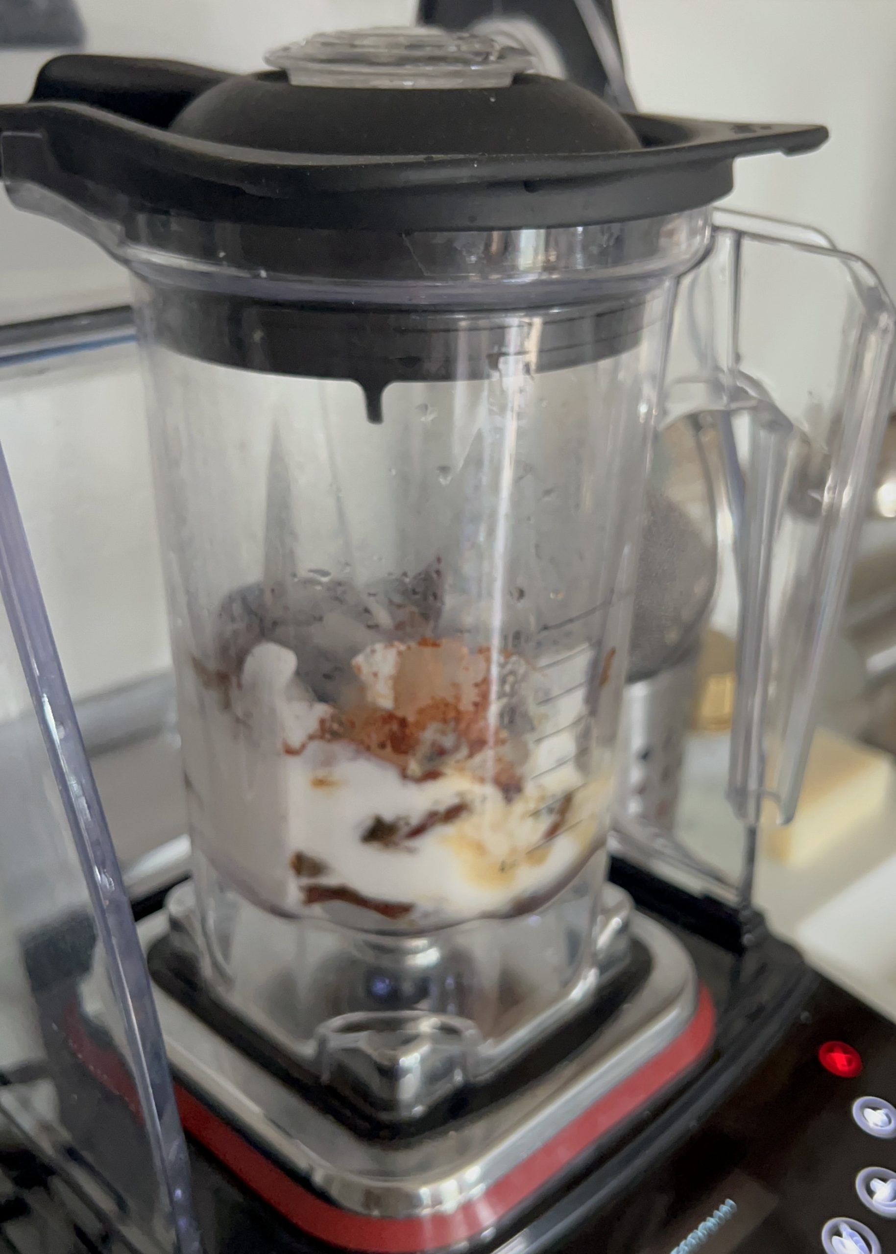Datules galite naudoti ir Medjol, ir pigias. Jeigu naudosi pigias, jos gana kietos – užpilki verdančiu vandeniu ir palik ~10 min. Prieš gaminant nupilam. Jeigu medjol, pakaks gerai praplaut po tekančiu vandeniu. Nukaulinam, visus ingredientus dedam į trintuvą ir sutrinam iki vientisos masės. Dedam į švarų stiklainį ir laikome šaldytuve.