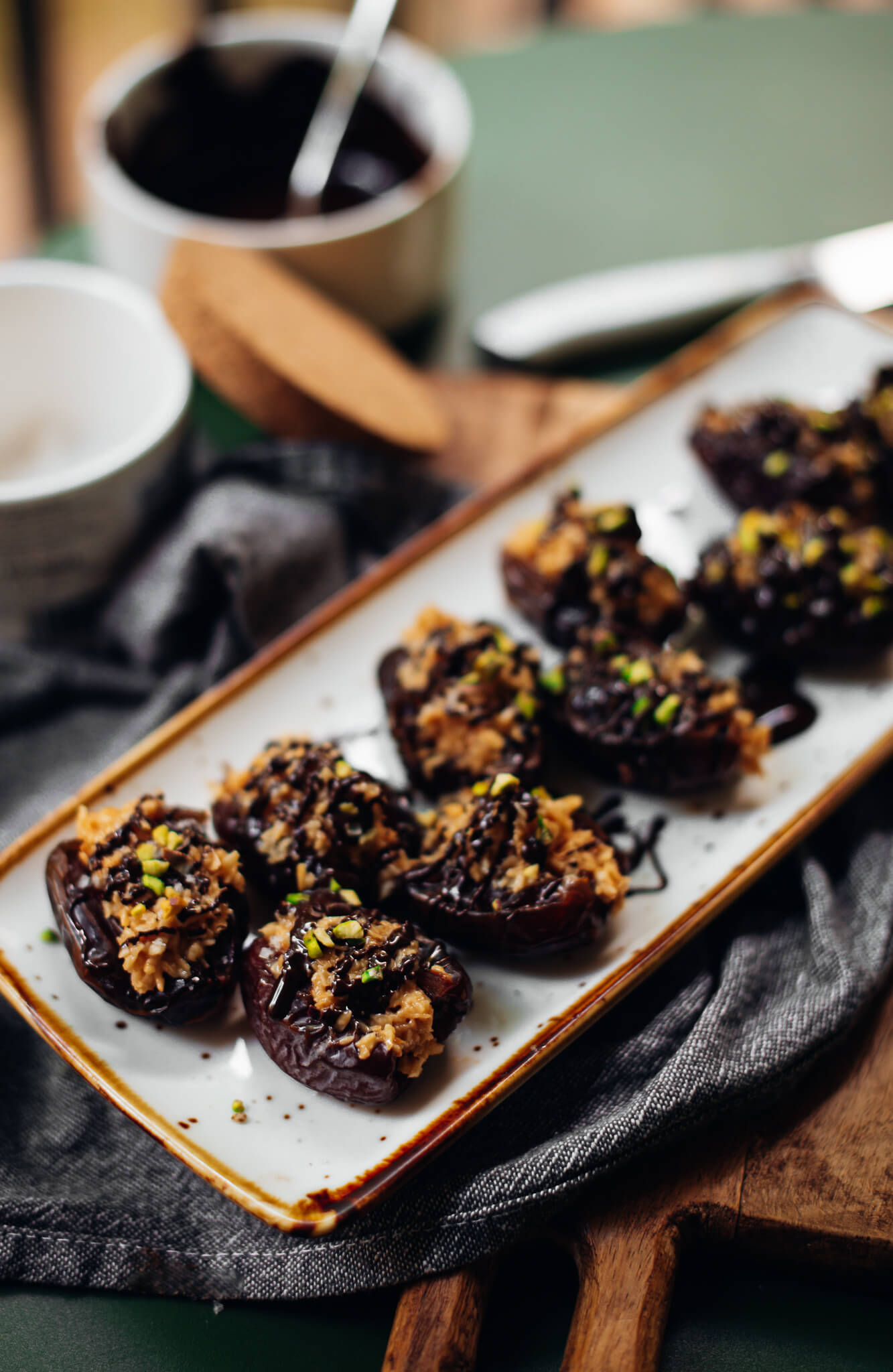 Receptas be galo paprastas: kokosų drožles apkepu keptuvėje, atvėsus sumaišau su @birzu_duona makadamijų riešutų kremu iki tokios tekstūros, kad viskas apliptų, bet ne varvėtų nuo šaukšto. Medjol datules praplaunu, prapjaunu, išimu kaulą ir jo vietoje dedu po šaukštelį įdaro.